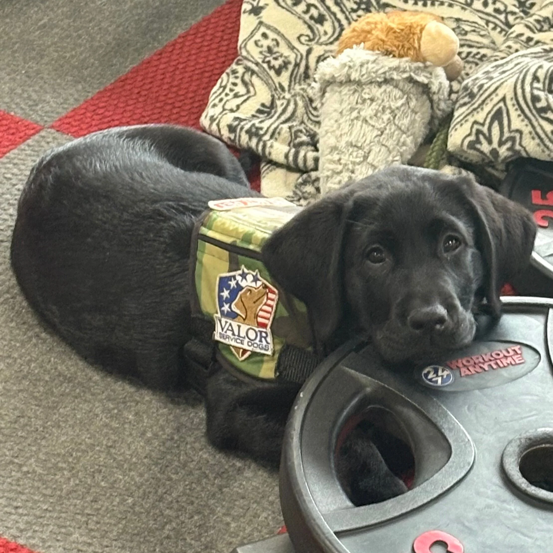 Trip, red collar, is from Walker Valor’s first litter and will be training with our Valdosta program. Walker’s litter, whelping through the first eight weeks, was sponsored by Scoop Soldiers. Trip will be training with our Tampa program.